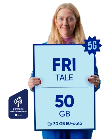 Hvis du både taler meget og bruger meget data, så har vi et mobilabonnement med 80 GB data og fri tale. Her får du også adgang til vores 5G netværk. Vi har også et abonnement med 30 GB data hvis du ikke bruger så meget.